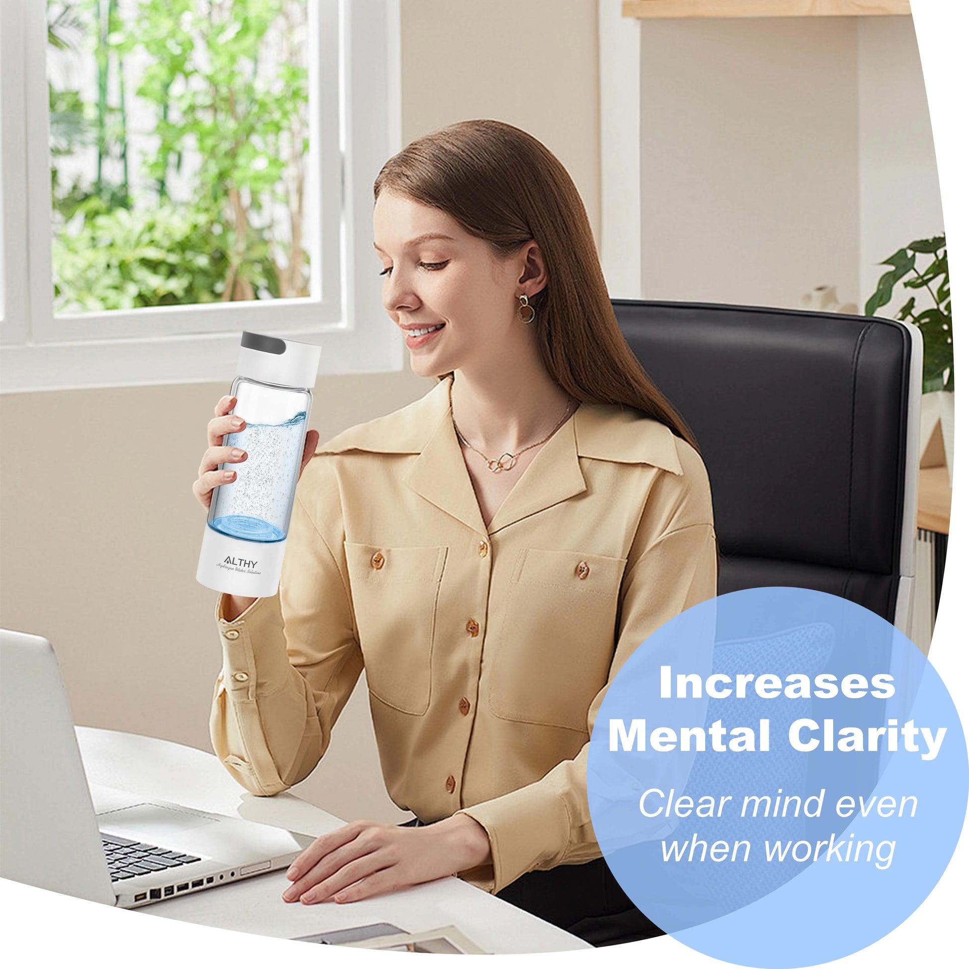 ALTHY Hydrogen Rich Water Generator Bottle - Glass Cupbody - DuPont SPE & PEM Dual Chamber Maker Ionizer - H2 Inhalation Device