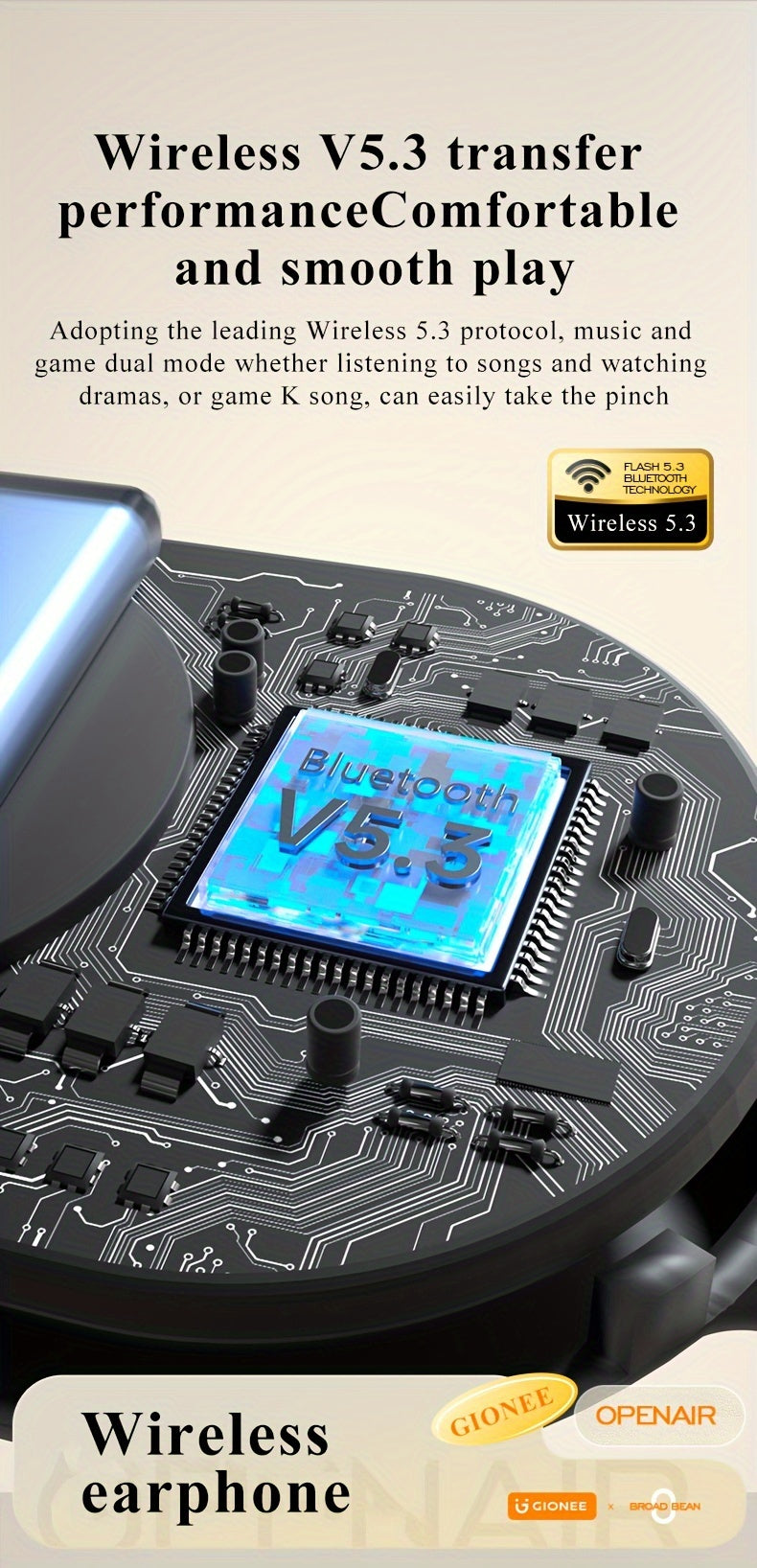Gionee001True Wireless Earbuds With Mic, TWS In-Ear Headphones With ENC Noise Cancelling Mic, Sport Earhook Headset, Stereo In Ear Headphones With LED Display Charing Case, Wireless Running Sports Earbuds Earhook